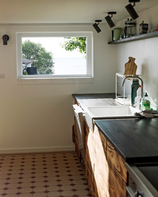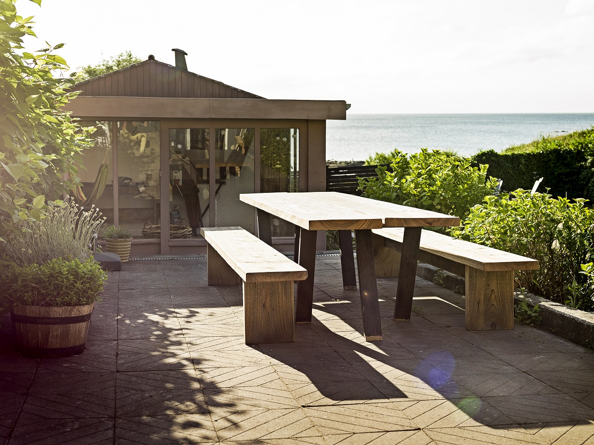 For ikke at udsætte os selv og vores gæster for et logistisk helvede og halsbrækkende balanceakt op og ned ad trapperne fra det høje centralkøkken, når man vil spise i haven, har vi selvfølgelig lagt et køkken i havehøjde.