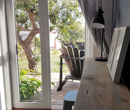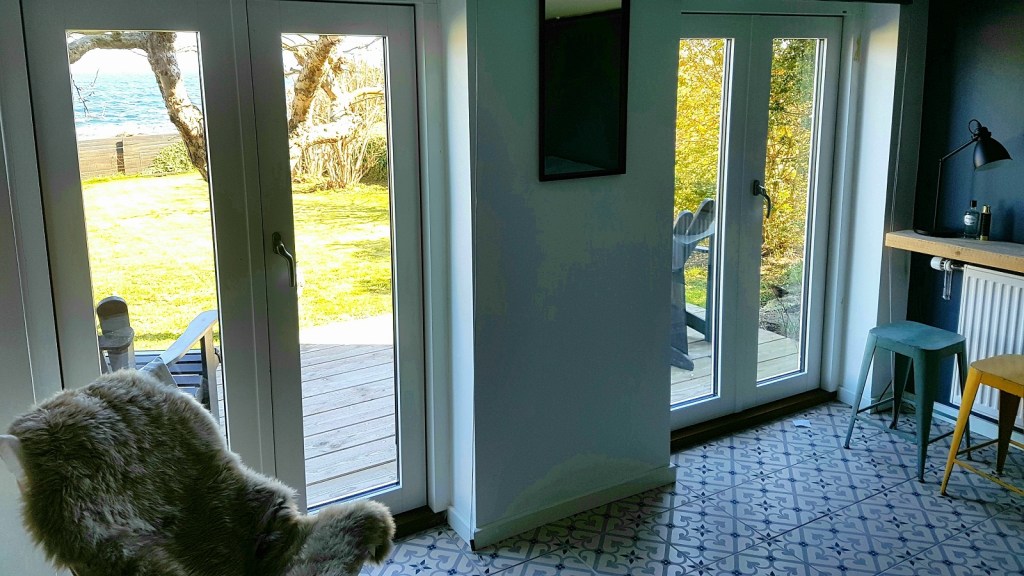 Det ene, er med king size seng, og vender ud mod havet (øst) med direkte udgang til haven.